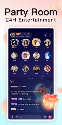 Multi-player audio room parties are available 24/7! You are welcomed to join without any burden! Unlimited entertainment is available -- singing, games, chatting, sharing and chilling with friends.
