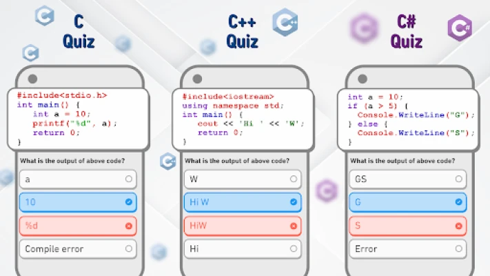 Master C, C++, and C# programming with this all-in-one quiz app! Whether you're a beginner or brushing up your coding knowledge, this app helps you test and improve your skills in a fun and interactive way.