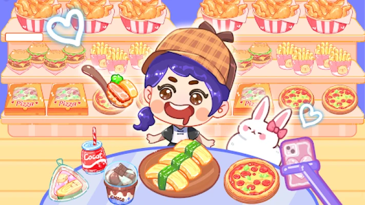 🏩 Supermarket: Head to the market to shop for the foods and craft your perfect feast. You can choose from various attractive food items from the supermarket, such as noodles, hamburgers, ice cream...