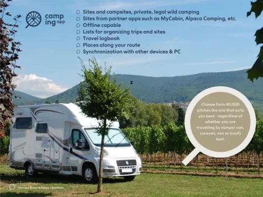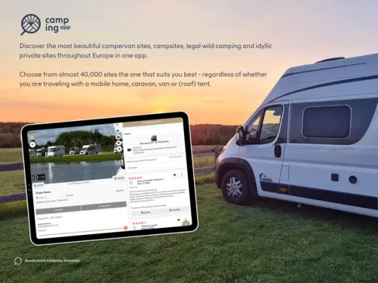 Find 55,000 motorhome sites, the most beautiful spots for wild camping, campsites, private sites and also simple parking spaces for overnight stays.