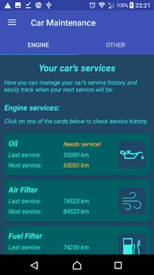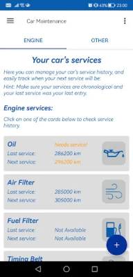 - Car Maintenance is an application which helps you monitor your car's service needs and history, take care of service dues on time and more.