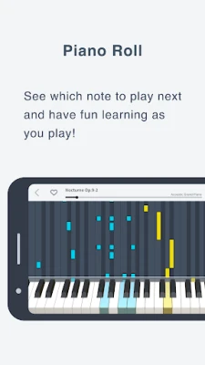 The piano roll makes it easy to see which notes to play even if you don’t read music. It’s a great way to have fun learning while playing.