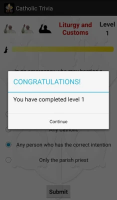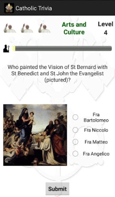 This is a trivia game which tests your knowledge of the Catholic Church. The more you play this trivia game, the more you learn about the Catholic Church. The large database of questions provides replayability in addition to the opportunity to employ the knowledge you gain from your mistakes to advance further in the game.
