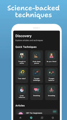 CBT for anxiety & overthinking blends cognitive tools, behavioral skills, a Mood Tracker, and mindfulness practices so you can think clearer and feel real relief.