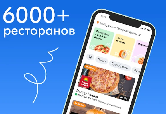 190+ городов, 6000+ ресторанов, 600 баллов за регистрацию на бесплатное блюдо к любому заказу!