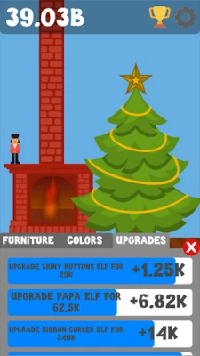 Earn shimmering baubles, hire helpful elves, and decorate your cozy cabin for the merriest of seasons. From glittering ornaments to glowing garland, every upgrade brings your winter wonderland to life.