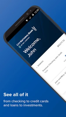 City National Bank App requires that you download the City National Bank App and is only available for select mobile devices. Requires setup in City National Online®. Data connection required. Message and data rates may apply.