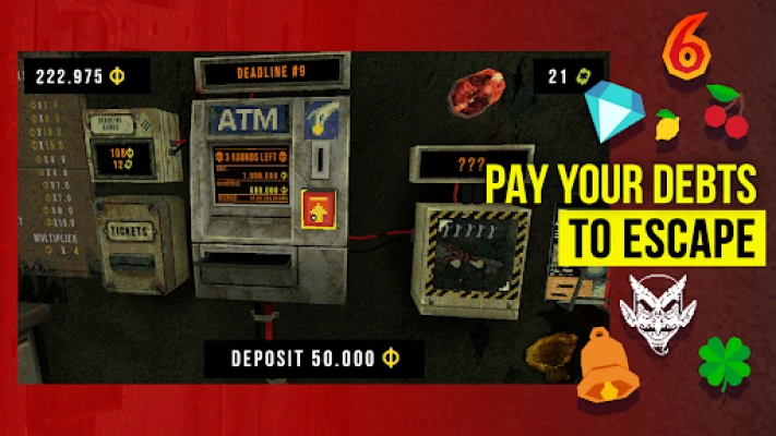Manipulate the slot machine to earn extra coins. Turn the odds in your favor with various prizes and charms that trigger big big combos, snowballing into a dazzling lucky run. Bend the rules, break the game, and pay off your captor long enough to earn a shot at freedom.