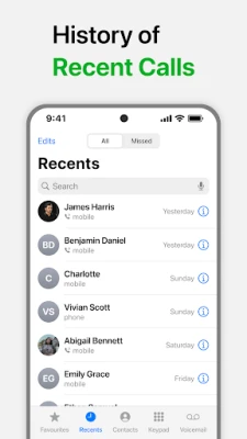 Fast search: Quickly find contacts and calls with our lightning-fast T9 search.