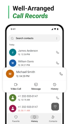 • Call History & Recent Logs – View missed, incoming, and outgoing calls easily.
