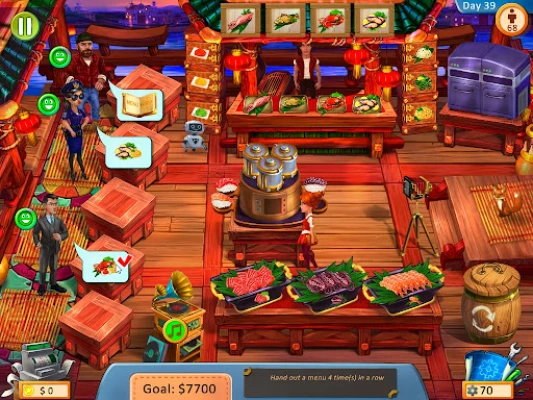 Expect colorful locations, levels of varying difficulty, lots of characters and dishes, bonus quests, the ability to upgrade and develop restaurants, varied achievements, intuitive gameplay for all ages, beautiful music and an exciting plot.
