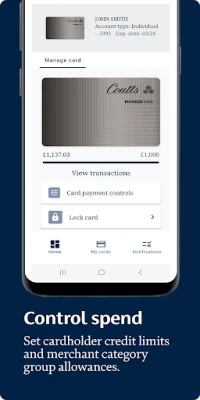 Coutts ClearSpend is available to eligible Coutts Business and Commercial Card account customers with compatible Android devices and a UK or international mobile number in specific countries. Over 18s only, other terms and conditions apply.