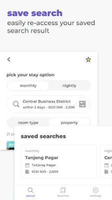 You can mark the co-living rooms and service apartments you like as favorites, so you can easily access them in the future. This helps you to save interesting co-living rooms and service apartments in one place for easy access.