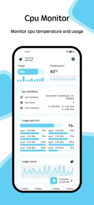 A beautiful and powerful cpu monitor app for android! You are able to monitor cpu temperature and frequency and analyze the cpu temperature and frequency history data. You can monitor the ram, cpu and battery information very convenient. The detail features including: ★ CPU Monitor Show the cpu temperature and frequency, analyze the cpu temperature and frequency history information, and support the multicore cpu.