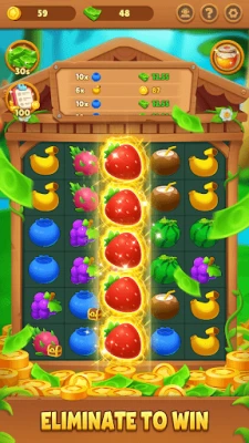 Fresh and delicious fruits in the forest are the goal to obtain. Multiple identical fruits can be eliminated by connecting them. After elimination, you can get generous rewards, and these rewards only require you to lightly click the "spin" button.