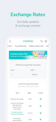 1. Best travel tips for you everyday (more than 6,000) 2. Book trending activities in your own language 3. Enjoy hipster cafes and pay cheaper than the locals 4. Look up the nearest local trendiest spot based on your location 5. Check daily exchange rates in Myeongdong, Hongdae, and Busan