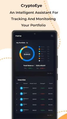 Introducing CryptoEye, the ultimate investment tracking app that brings a world of possibilities to your fingertips. With CryptoEye, you can effortlessly manage your crypto assets and stay ahead of market trends. With the help of AI, after adding your portfolio, you can receive news and important events affecting the price of your property. Let's explore the amazing features CryptoEye has to offer: