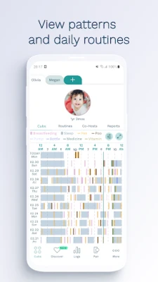 2- Charts & routines: View your child's routines by looking at pattern charts, daily sessions and durations. You can also set up your own day/night times and customize the charts.