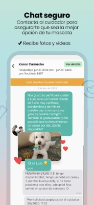 Reserva hospedaje, visitas en casa o paseos para tu perro o gato con total tranquilidad, directamente desde la app.