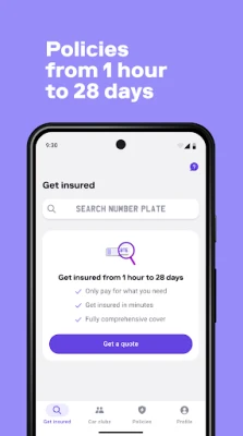 Download the Cuvva app, get a quote and be covered in minutes. Lend or borrow a car whenever you need to, or insure your own car until you sort out longer-term cover. Our fully comprehensive policies last from 1 hour to 28 days, so you can:
