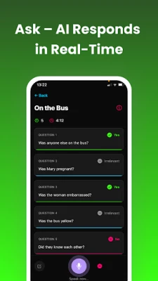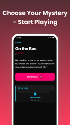 Your personal AI assistant helps you solve mysteries! Simply ask questions using your voice (or type them) and receive instant "yes" or "no". The AI guides you through the investigation, making you feel like a real detective. Perfect for solo play anytime, anywhere!