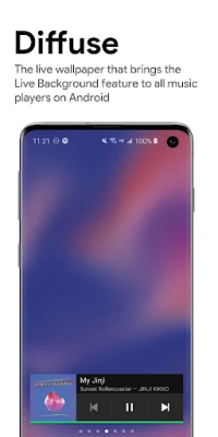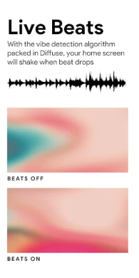 Diffuse transforms your home screen into a living canvas that dances with your music. Featuring real‑time fluid visuals driven by your album art, subtle beat‑based motion, and deep customization — all with minimal battery usage.