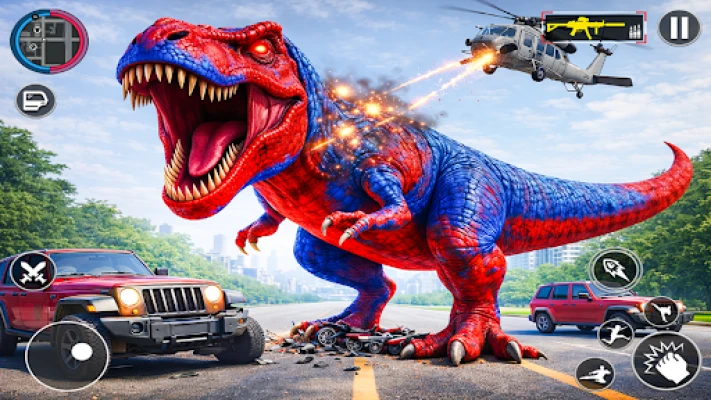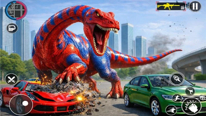 Take on action-packed dino attack missions. Destroy cars, fight enemies, and survive against powerful forces. Explore the open world freely and show true dinosaur strength.