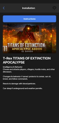 The “Dino Mods for Minecraft” app allows you to install all add-ons in a couple of clicks, everything works directly through Minecraft Pocket Edition. Compatibility with other add-ons and maps is supported. All mods are verified and regularly updated.