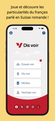 Du Jura au Valais, de Genève au Val-de-Ruz, le français parlé en Suisse n’a jamais ni les mêmes teintes ni les mêmes sonorités. Qui n’a jamais été surpris, en se rendant hors de son canton d’origine, par l’utilisation de telle ou telle expression ou la prononciation de tel ou tel mot ? L’application *Dis voir* a été conçue pour documenter et valoriser les variations linguistiques du français en Suisse romande. Aidez-nous à mettre en valeur cette variation tout en vous amusant !