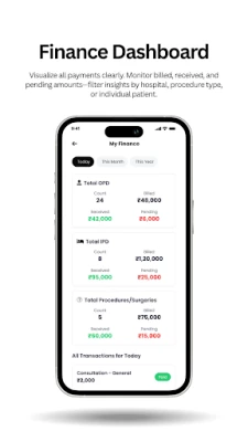 Track Every Rupee: Log your charges and received amounts for every procedure, surgery, and consultation.