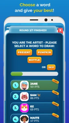 In the multiplayer mode, one player is selected as the artist, he is offered three words to choose from and his task is to draw the selected word. Other players try to guess what the artist is drawing. The winner is the player who first guesses the correct word.