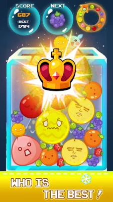 Drop Fruit is not just a puzzle game that showcases your creativity in making strategic moves, but also helps you relax with adorable fruit expressions that will entertain you as you merge fruits and create fruits in your basket. Create as many larger fruits as possible before they overflow from your basket, using your thinking skills and organization. Let's see who will be the best at merging fruits and creating more fruits. Let's Drop Fruit.