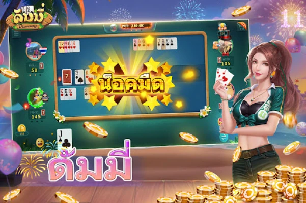 1.【ไพ่ดัมมี่】เป็นดัมมี่ไทยที่คนไทยชอบกันมากที่สุด พอเริ่มเกม หลังระบบแจกไพ่เรียบร้อยแล้ว จะทำการจั่ว/เกิด/ลง/ฝากไพ่ เมื่อมีคนออกไพ่ในมือลงไปบนโต๊ะจนเหลือไพ่ 1 ใบหรือจั่วไพ่ในกองกลางหมด เกมรอบนั้นก็จะจบลง แล้วระบบก็จะรวมคะแนนไว้ คนที่ได้คะแนนเยอะสุดจะชนะชิปเยอะสุด ถ้าทําการน็อคมืดได้ จะได้รับชิปฟรียิ่งเยอะนะ!