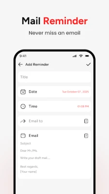 Never miss important email again with built-in reminders. Set a reminder to send or follow up on emails at the right time. Whether it’s a client update, job application, or personal message, your email app keeps you on track.