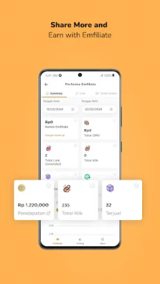 User bebas untuk memilih produk yang ingin dipromosikan, user bisa menggunakan banyak platform socail untuk di gunakan sebagai media promotor. Program Emfiliate ini bisa diikuti oleh siapa saja tanpa ada minimum followers. Prosesnya mudah dan tidak ada kontrak eksklusif yang mengikat. Fitur auto withdrawal dapat mempermudah user dalam mencairkan komisi ke rekening pribadi.