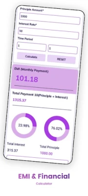 EMI & Financial Calculator App or EMI loan app helps to calculate EMIs, plan personal finance, Investment plans, wealth creation.