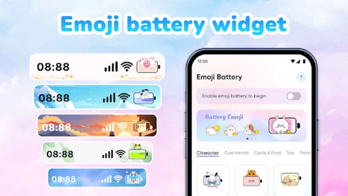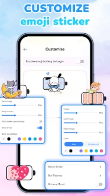 Tired of the boring default battery icon? Want to add fun, color, and personality to your phone? Introducing Emoji Battery, the app that lets you fully customize your battery icon and status bar with adorable emojis, fun battery stickers, and cute notch styles!