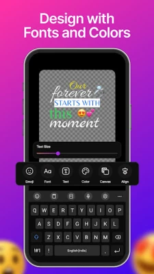 Just type your text, select a font style, and add emoji for story using iPhone emoji. You can easily change the font style, adjust text size, and choose different colors to match your mood. This app helps you make your story content more interesting and eye-catching.