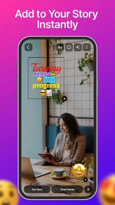 After creating your story design, you can save it to your gallery with just one tap. You can use your saved creations anytime and easily add them to your story or post whenever you want. It is perfect for creating fun and stylish story emoji designs for daily status updates, festivals, birthdays, and special moments.
