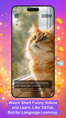 Short videos play without subtitles first — testing your real German listening skills. Subtitles appear on the second play. It's German listening practice meets short-form video.