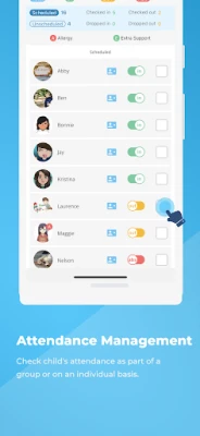 • Our app is designed to be easy to use, providing intuitive and straightforward attendance management features with key information about each child readily available at your fingertips.