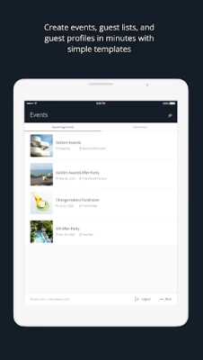- Fast, reliable, and secure guest check-in tools for professional events of all sizes, with contactless QR check-ins for increased safety.