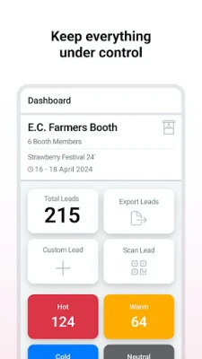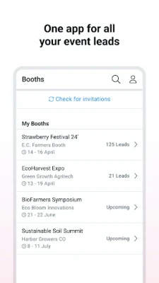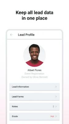 - Collect leads by scanning attendees' QR codes with just one tap or create custom leads when needed.