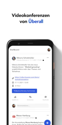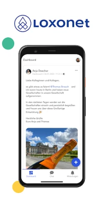 Funktionen: • Alle Updates des Unternehmens auf einen Blick ersichtlich • Privat- und Gruppenchats von überall aus erreichbar • Managen von Events und wichtigen Terminen • Single Sign On wird unterstützt