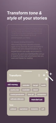 MOMENT TRANSFORMATION - Imagine easily molding your words into the precise tone and style you desire. With our "Text Transformation" feature, infuse your Moment Descriptions with various tones and personality profiles, whether professional, friendly, or humorous. You can even channel your inner creativity and let your favorite character take over your text. Elevate your words, captivate your audience, and let your voice shine through exactly as you envision it.