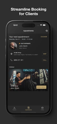 Barbers: - Powerful booking tools to manage appointments - Client management - Get paid faster with a streamlined checkout process - Real time sale projections - Instantly receive appointment notifications