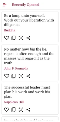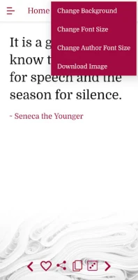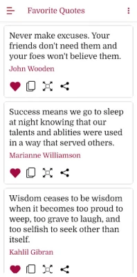 * Add a quote to your Favorites by clicking on the Heart icon. You can then select the Favorites quotes from the menu for later viewing.