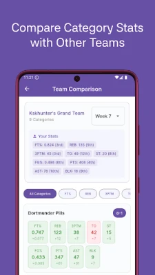 Category Analysis - Enables users to compare their team's category statistics against any opponent, simulate hypothetical matchups across the league, track weekly category rankings, and identify strengths and weaknesses.