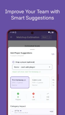 Matchup Predictions - Provides weekly H2H matchup forecasts with predicted category outcomes, real-time updates as the week progresses, and strategic guidance for lineup optimization and add/drop decisions.