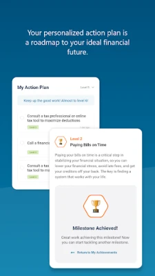 • Watch your score rise (and feel your financial stress drop) as you check off action steps.